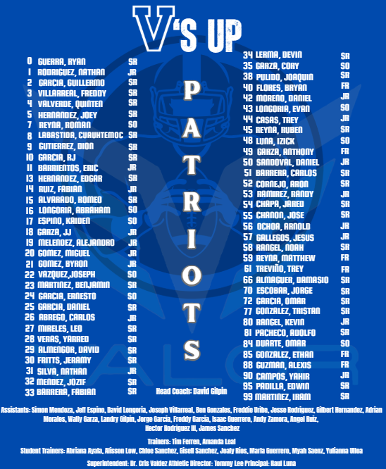 PICK UP AT VALOR HTV , 207 E. 9th Street Mission, Tx. (Building behind Mission Museum) GOOOO PATRIOTS!